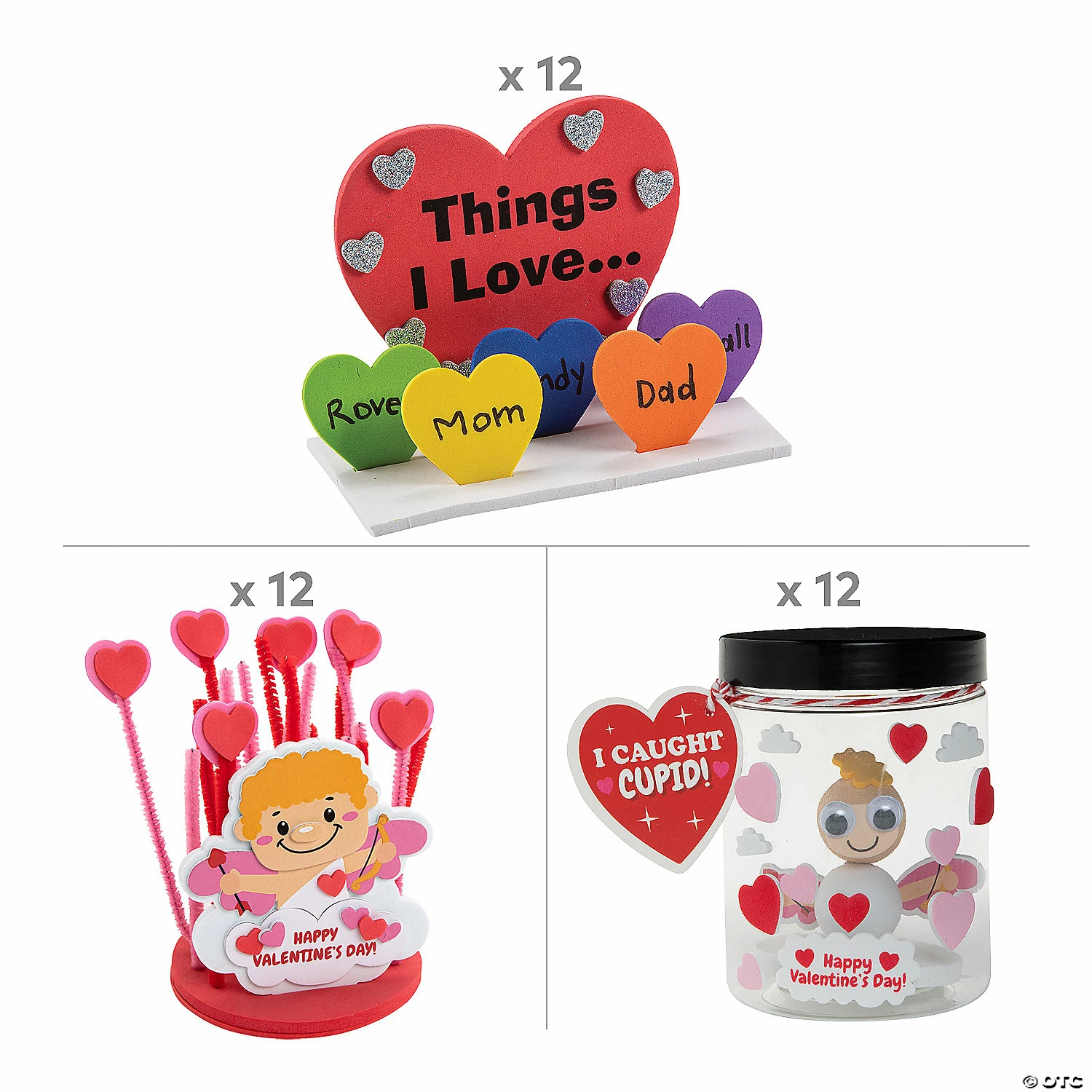 Kids love Valentine’s Day crafts! This charming Cupid is a fun foam craft kit that’s perfect for adding to your February classroom supplies โ art projects like this are an ideal way to reward kids for good behavior during those boring late winter days. If you’re looking for candy alternatives, these whimsical cherubs are just the thing; they entertain long after the chocolate is gone, and children love hanging them on their walls to accent their bedroom dรฉcor. Foam. 5 1/2″ x 5″ Makes 36. All craft pieces are pre-packaged for individual use. Kits include instructions. ยฉ OTCIncludes:12 I Caught Cupid in a Jar Craft Kits (Includes self-adhesive foam pieces, wooden dowel, googly eyes, cardstock card, bakerโs twine, styrofoam balls and plastic jar. 3″ x 4″12 Cupid in Heart Garden Craft Kits (Includes self-adhesive foam pieces and chenille stems. 5 1/2″ x 5″)12 3D Things I Love Heart Craft Kits (Includes self-adhesive foam pieces. 6 1/4″ x 4 1/4″)โข Assortments are subject to change at any time and may vary from picture shown. Substituted items will be similar in nature.