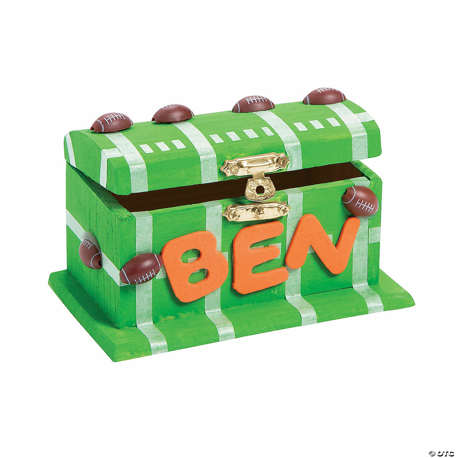 Do It Yourself Unfinished Wood Treasure Boxes. Kids will love to unleash their inner pirate and artist with this do it yourself wood craft project! This craft kit makes a fun activity for a pirate party! Kids can decorate them with their own paint and embellishments then store their loot inside! (1 dozen per unit) 4 1/4″ x 2 3/4″ x 2 7/8″ Each treasure chest has a hinged lid and metal latch. Paint sold separately.