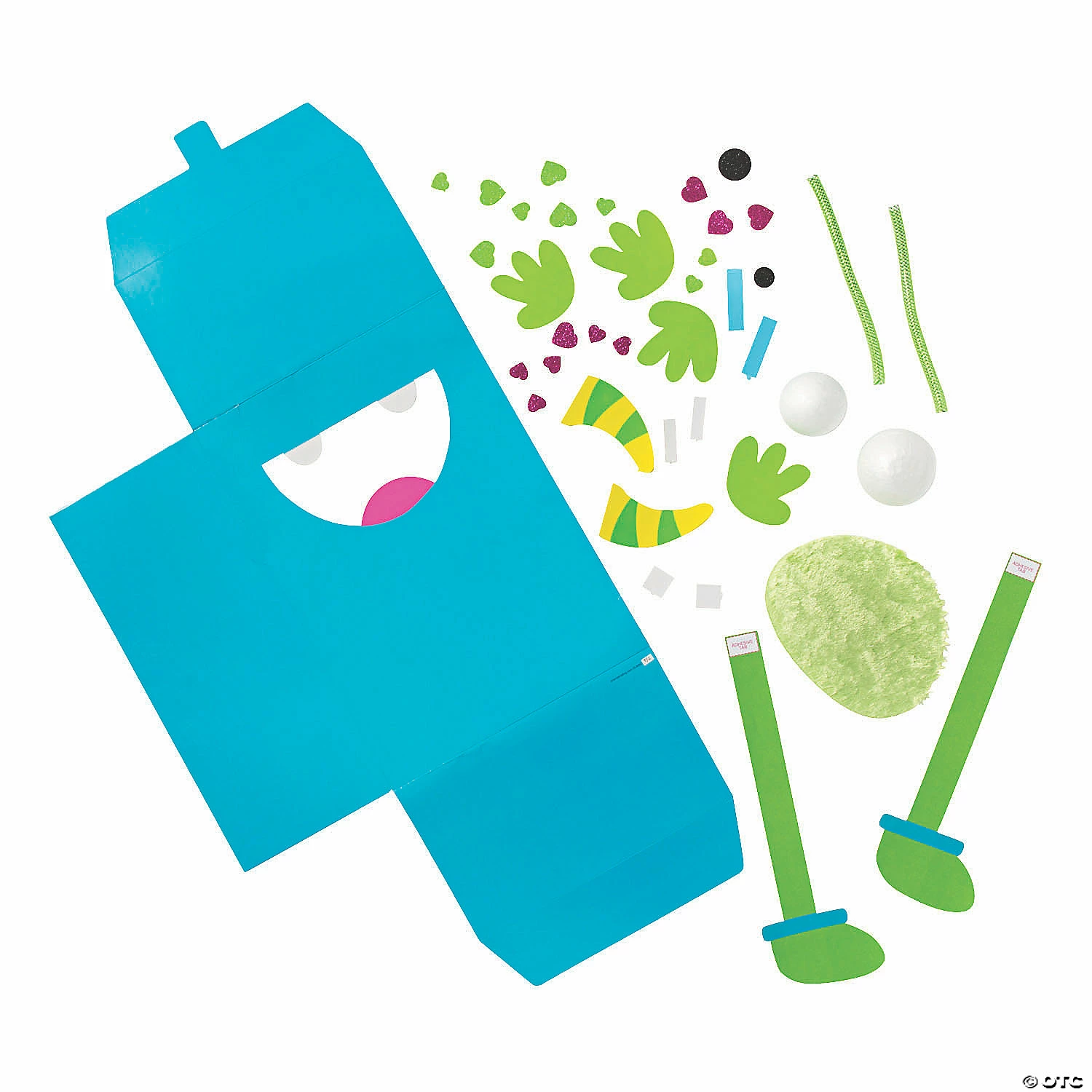 This cute creature is hungry for valentines! An adorable addition to Valentine’s Day crafts, this box really looks like a merry monster, complete with happy horns, not-so-sharp fangs and a big smile. Before the start of a classroom exchange, little ones will love making this new friend then having him help collect all sorts of goodies from classmates! Includes self-adhesive foam pieces, faux fur, Styrofoam and crinoline tubing. Cardboard. 8 1/2″ x 12″ Makes 1. All craft kit pieces are pre-packaged for individual use. Kit includes instructions. © OTC